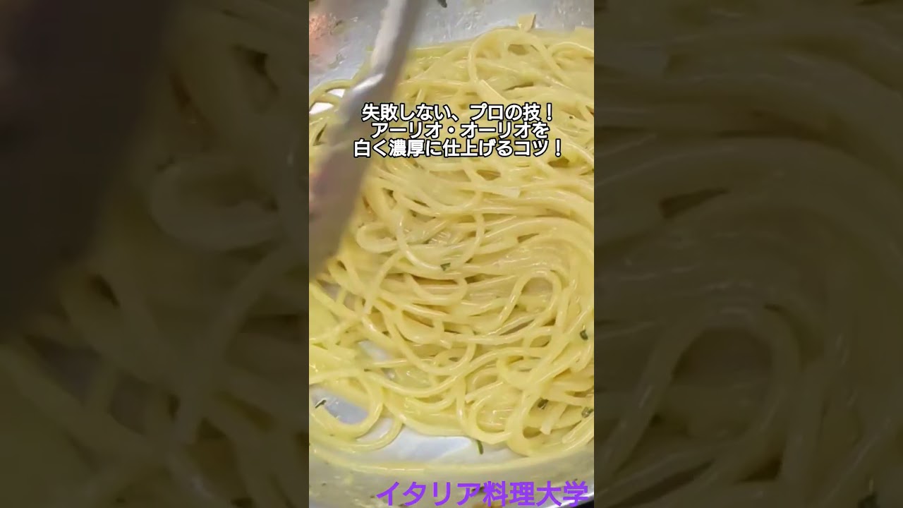 タイトル【簡単イタリアン】アーリオ・オーリオの乳化を失敗しない方法をベテランシェフから伝授。大切なのは温度!【イタリア料理大学】 #パスタ #アーリオ・オーリオ #イタリアン #料理のコツ #スパゲッティー